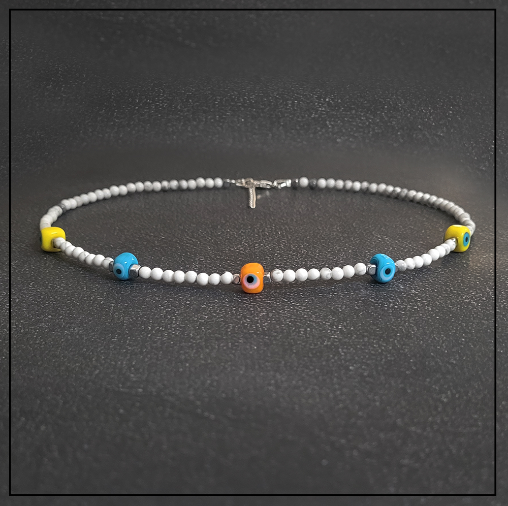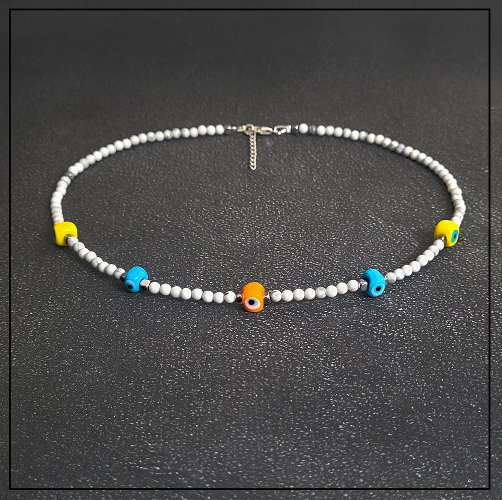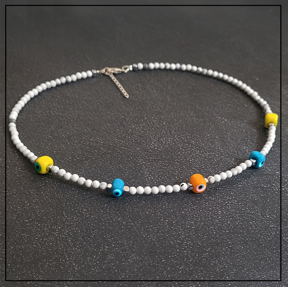 Opis produktu: Ręcznie robiony naszyjnik z kamieni naturalnych z motywem evil eye.