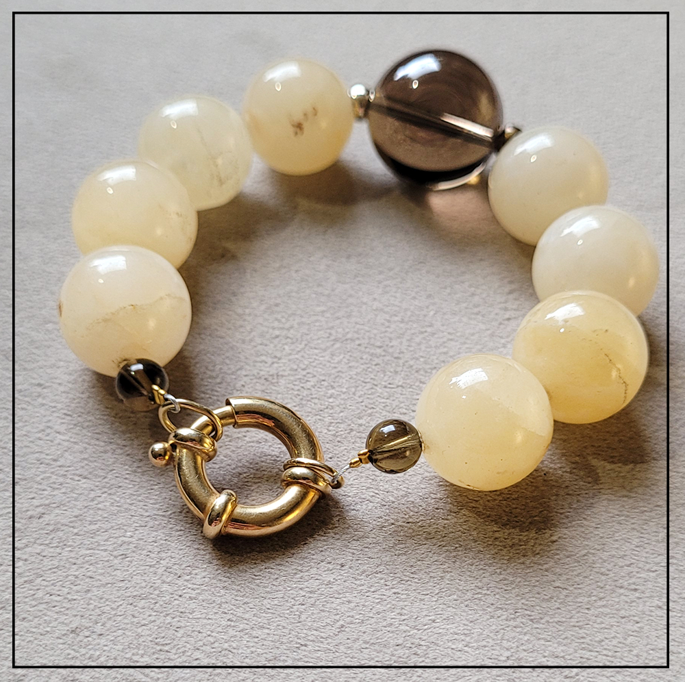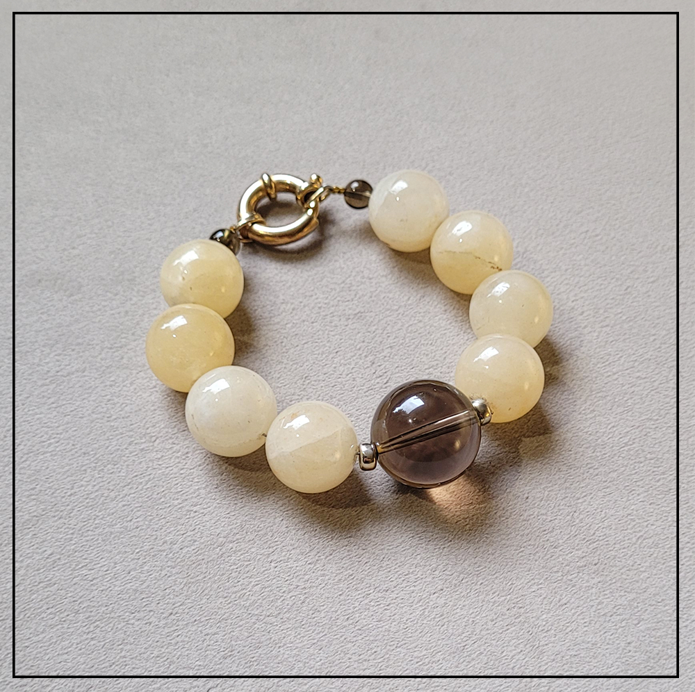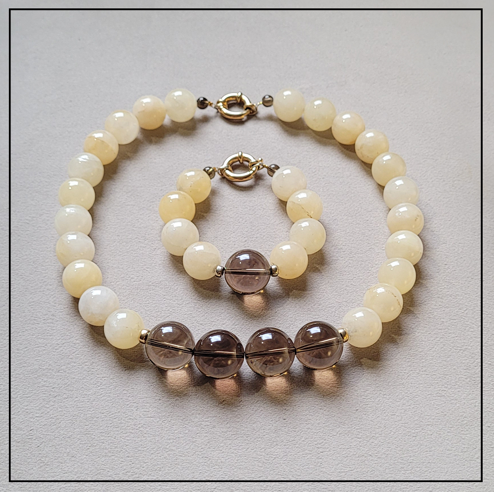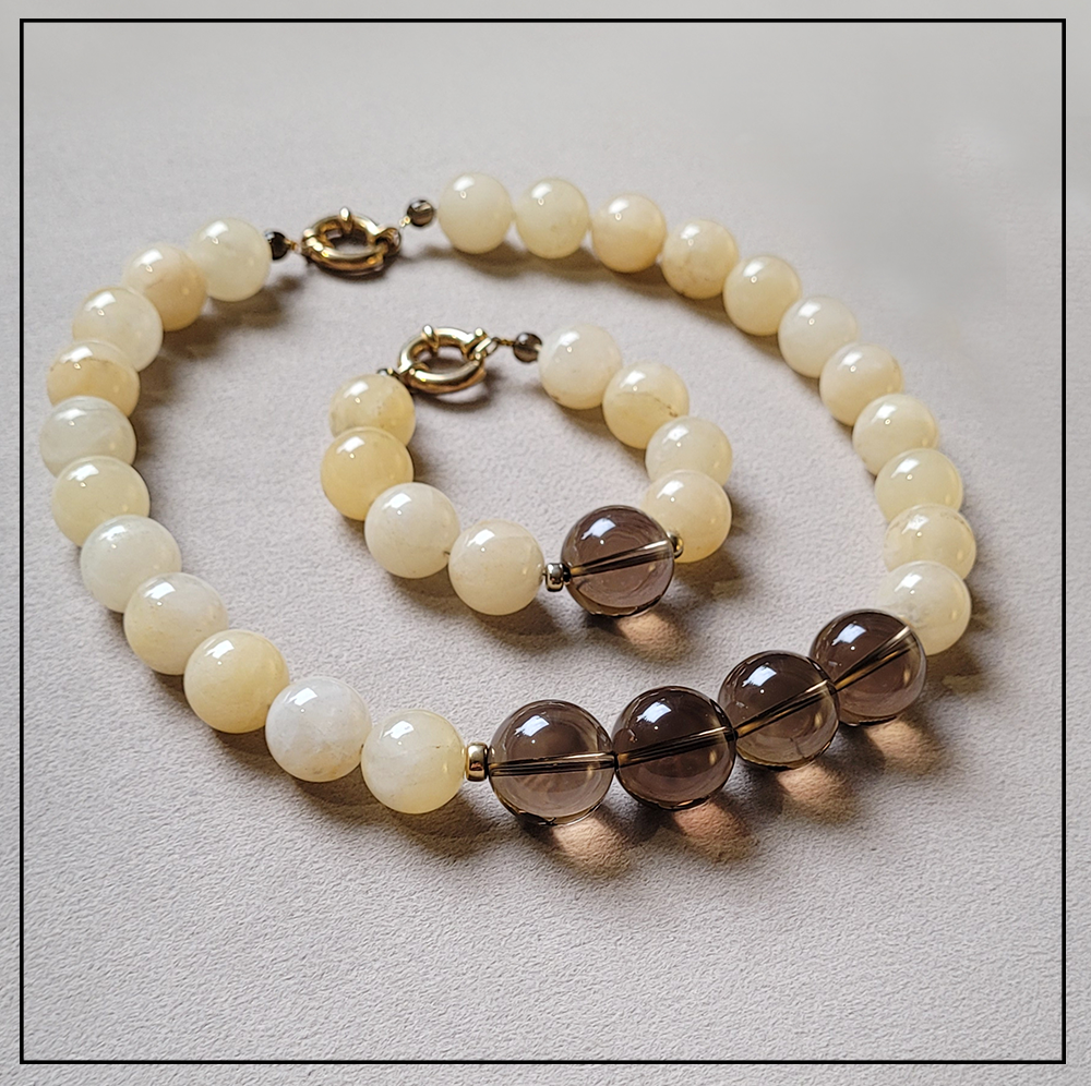 Materiał: Srebro 925 pozłacane 24k złotem, jadeit, kwarc dymny.