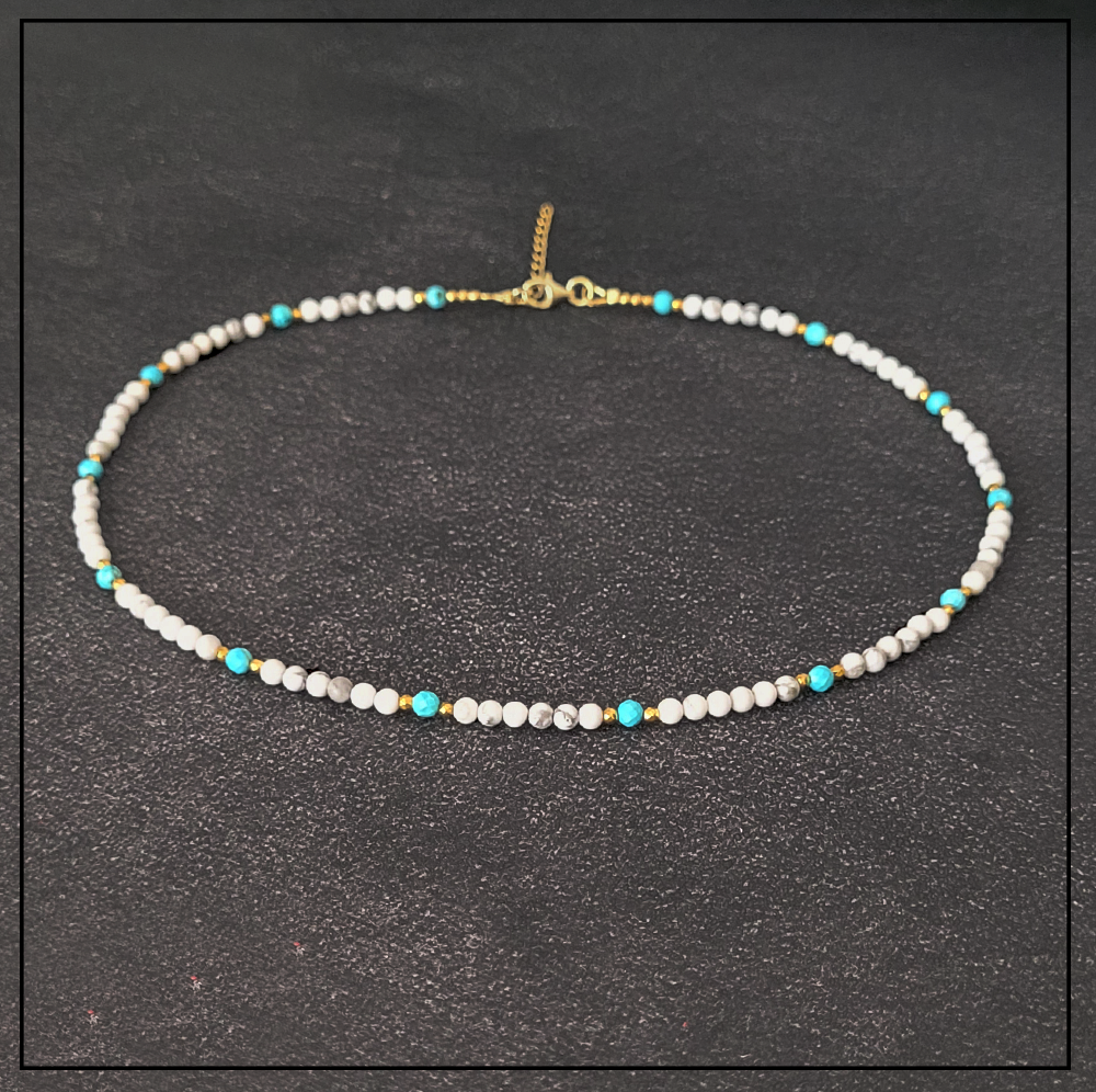 - HOWLIT – minerał z grupy krzemianów o barwie mlecznobiałej, często poprzecinany czarnymi lub ciemnobrązowymi żyłkami. Może być barwiony dla imitowania innych kamieni, zwłaszcza turkusu. Właściwości: Przynosi szczęście i powodzenie. To minerał mądrości – otwiera umysł na informację i wiedzę. Ponadto howlit uspokaja i uczy cierpliwości. Wycisza umysł i eliminuje napięcia. Przyda się, jeśli masz do czynienia z ludźmi gwałtownymi i wybuchowymi, ponieważ uodparnia na ich agresję.