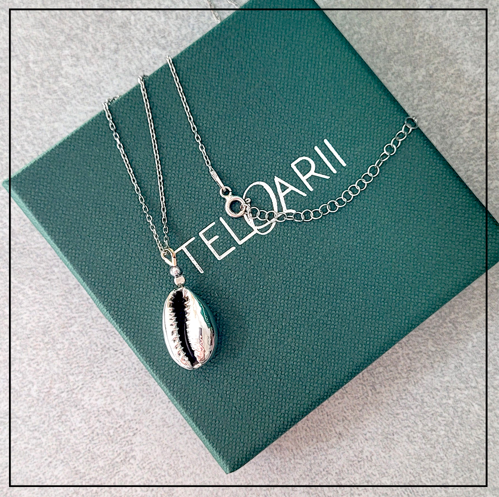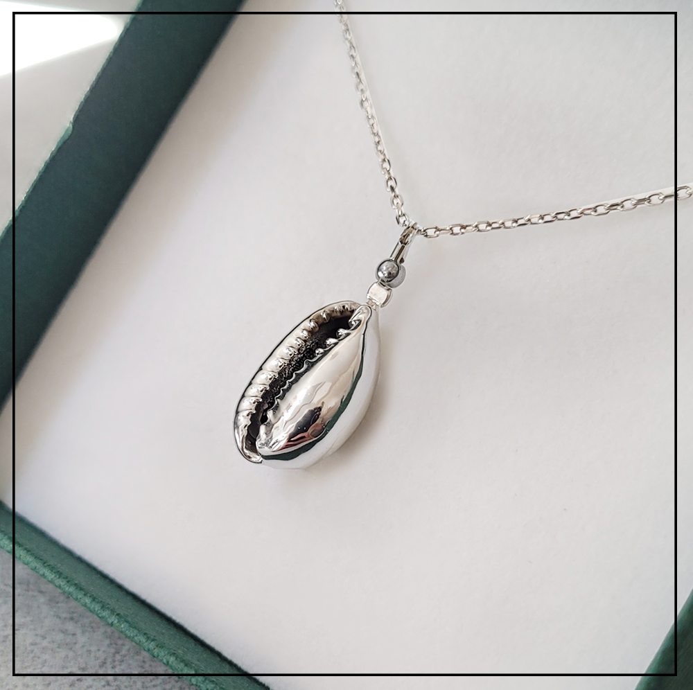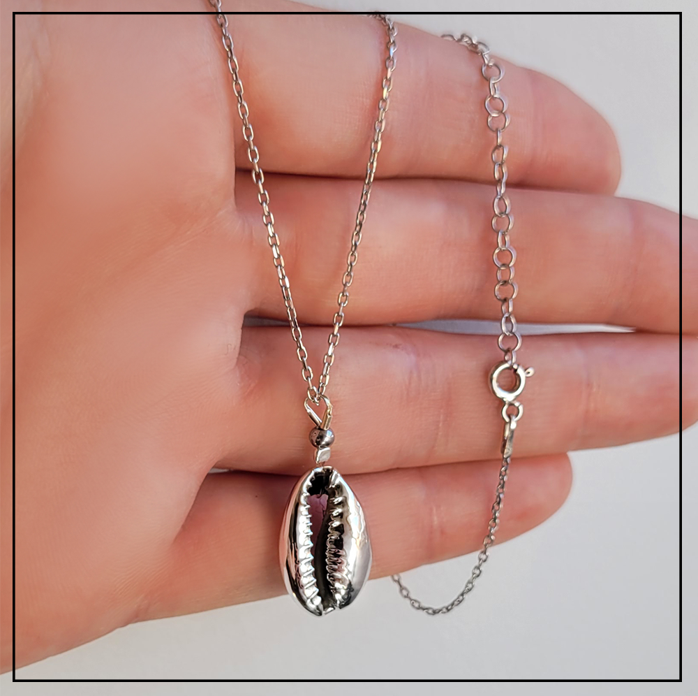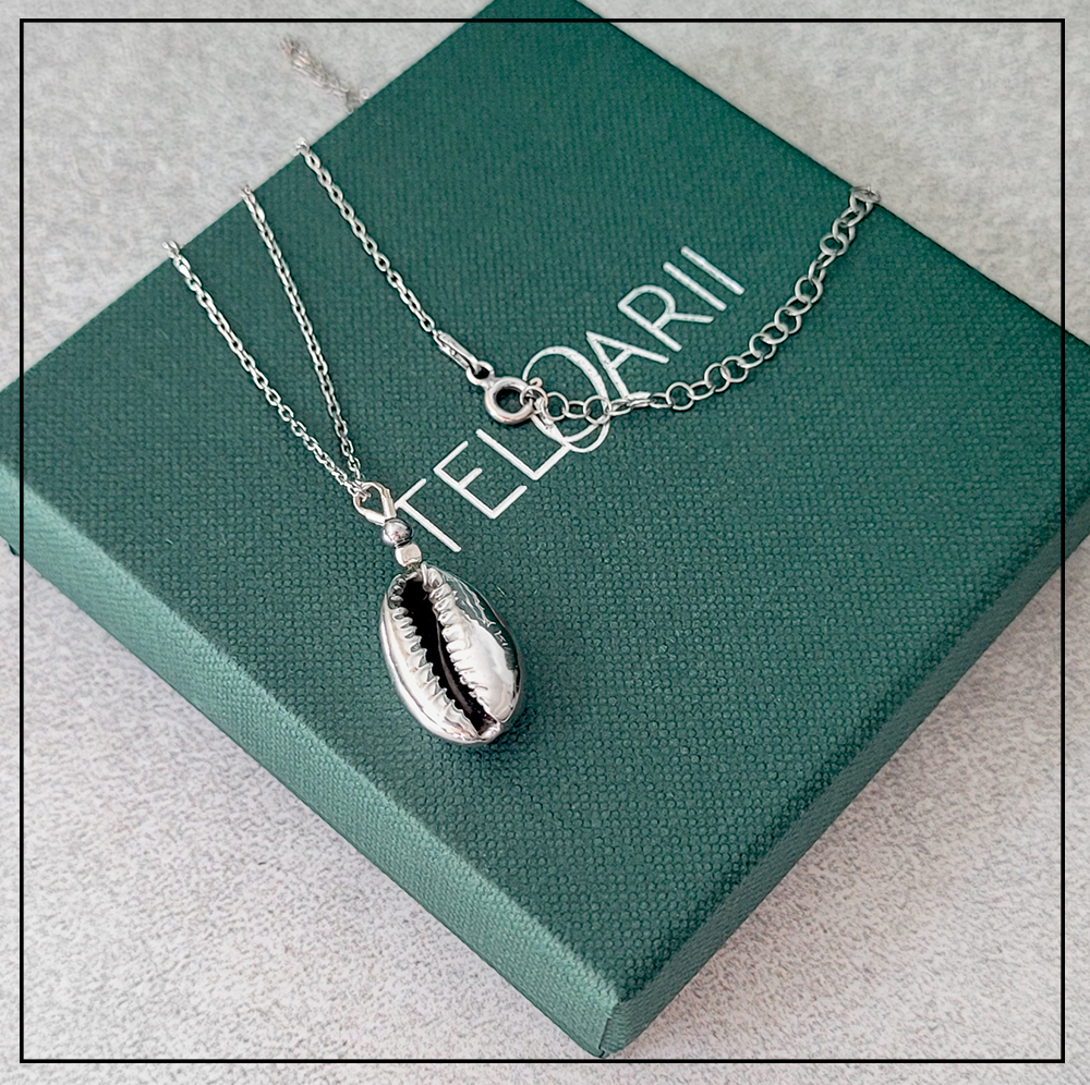 Materiał: Srebro 925, galwanizowana muszelka Kauri, magnezyt.