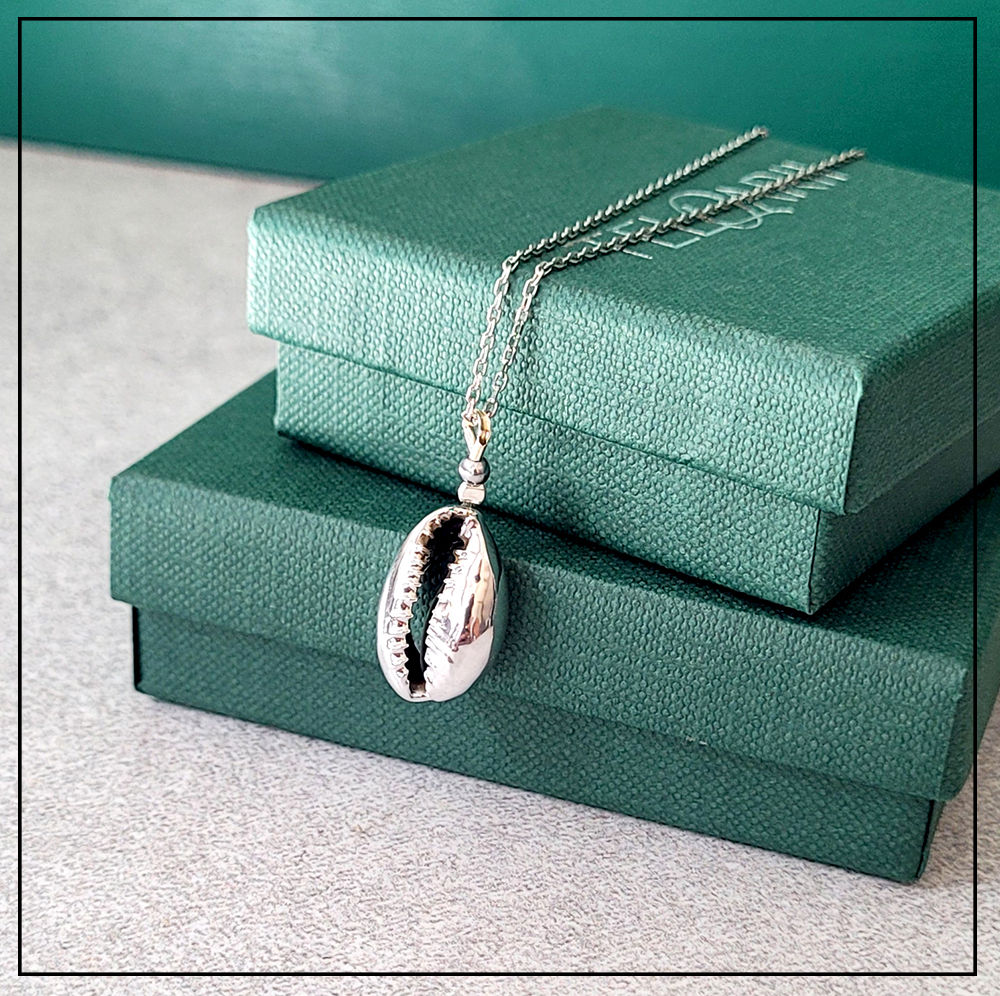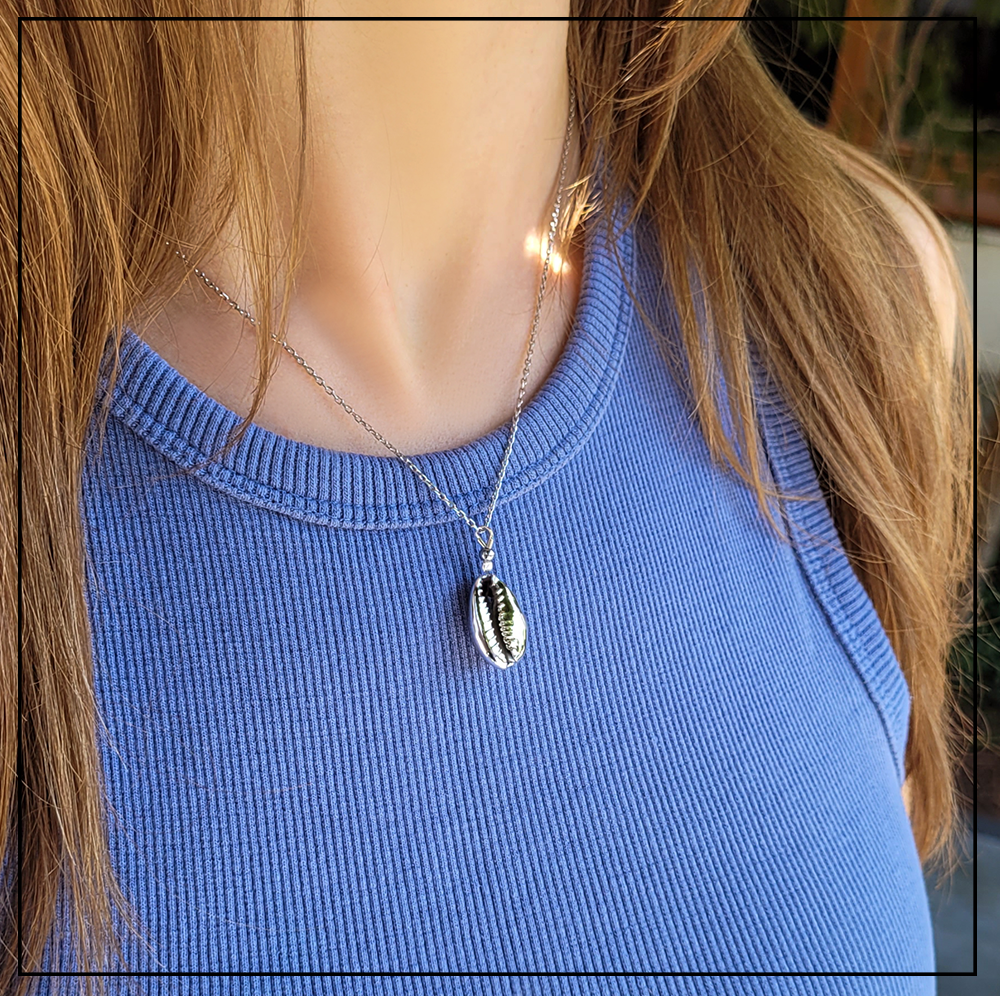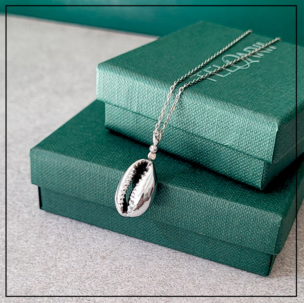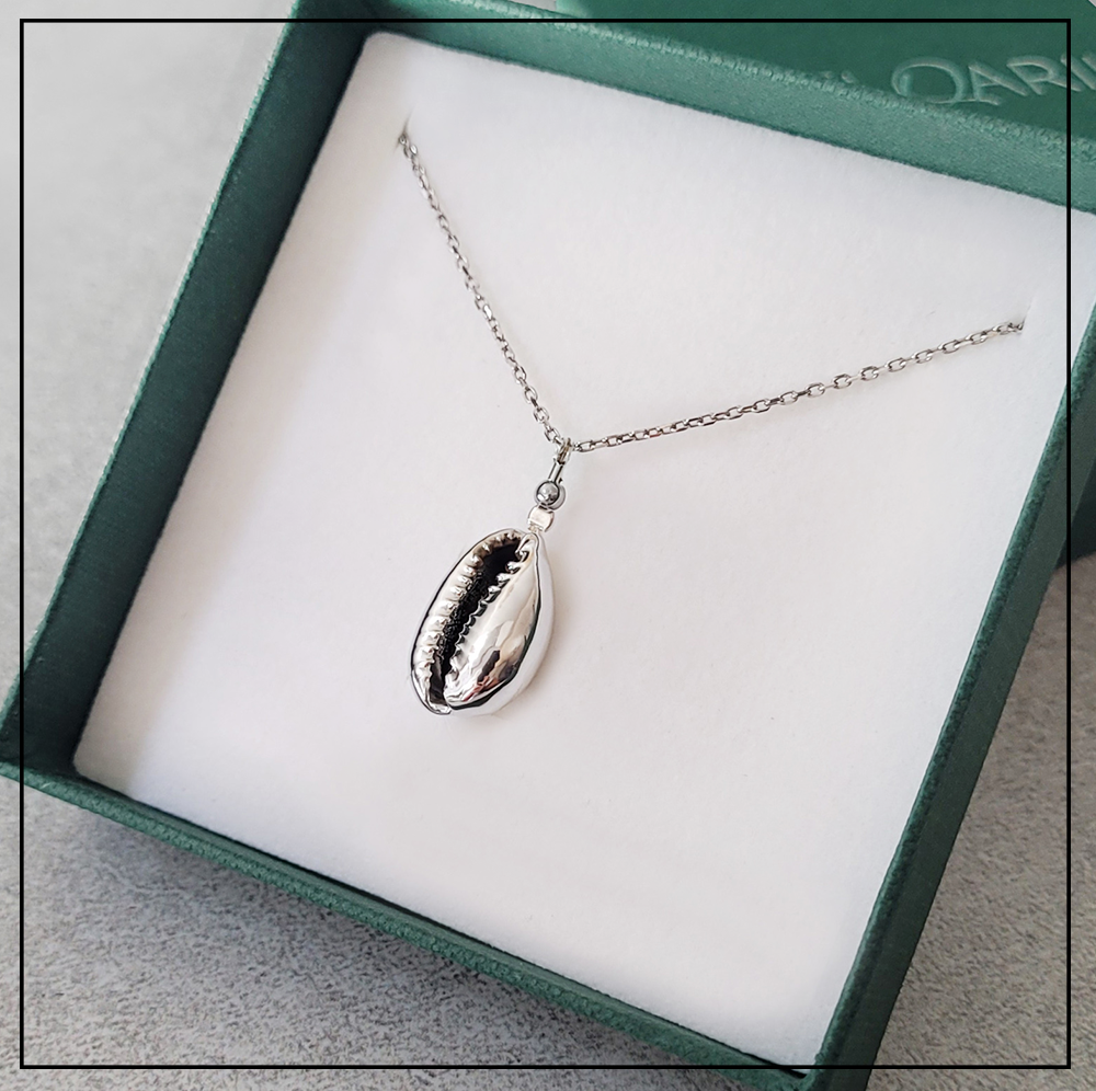 Materiał: Srebro 925, galwanizowana muszelka Kauri, magnezyt.