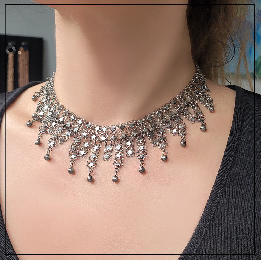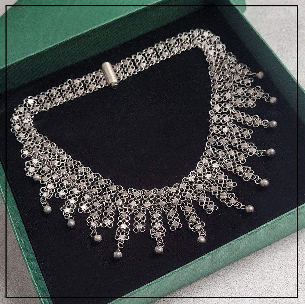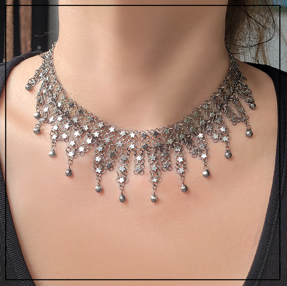 Opis produktu: Orientalny naszyjnik Telkari z gwiazdkami to rękodzieło tureckie z regionu Mardin/Midyat.