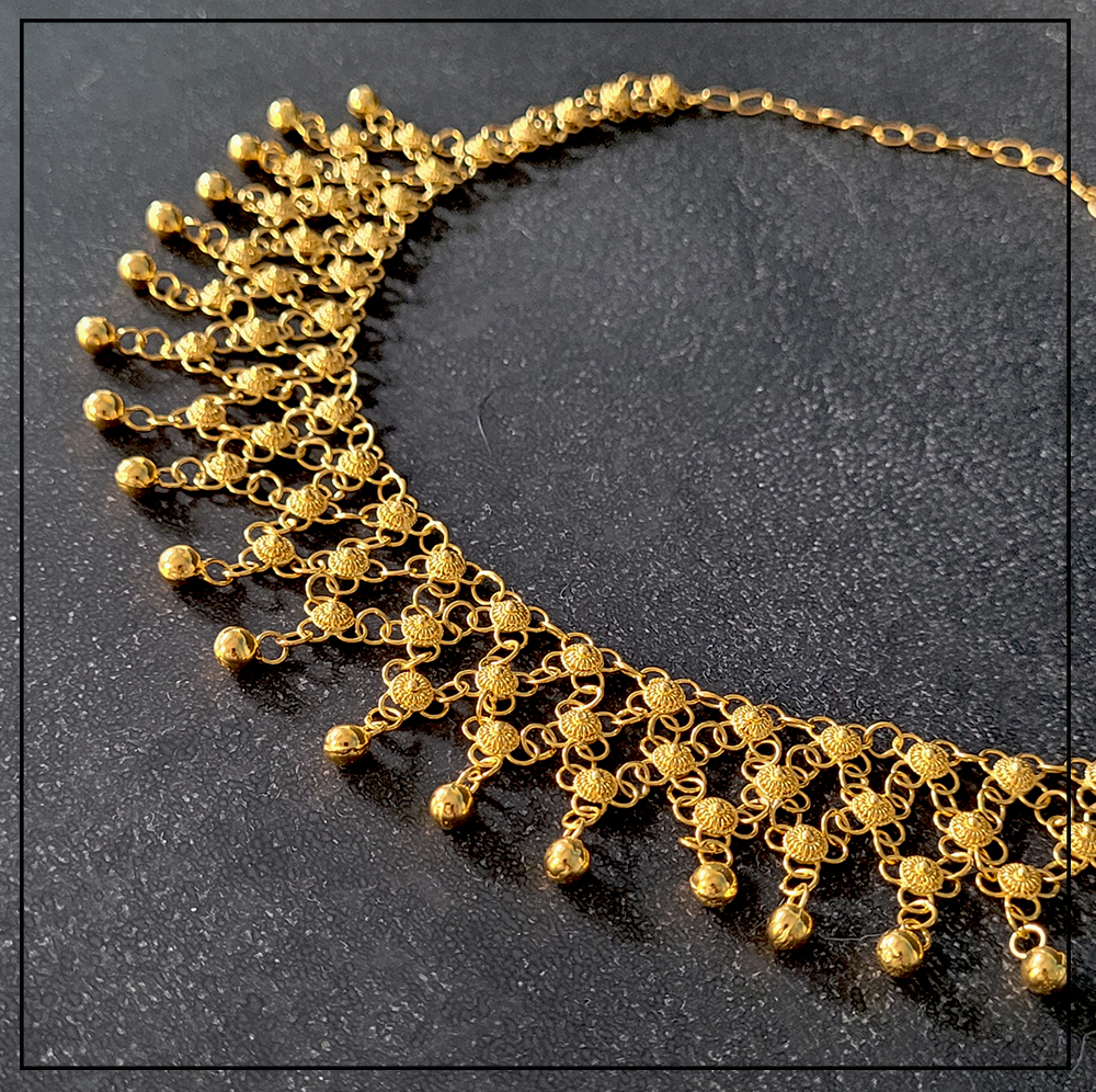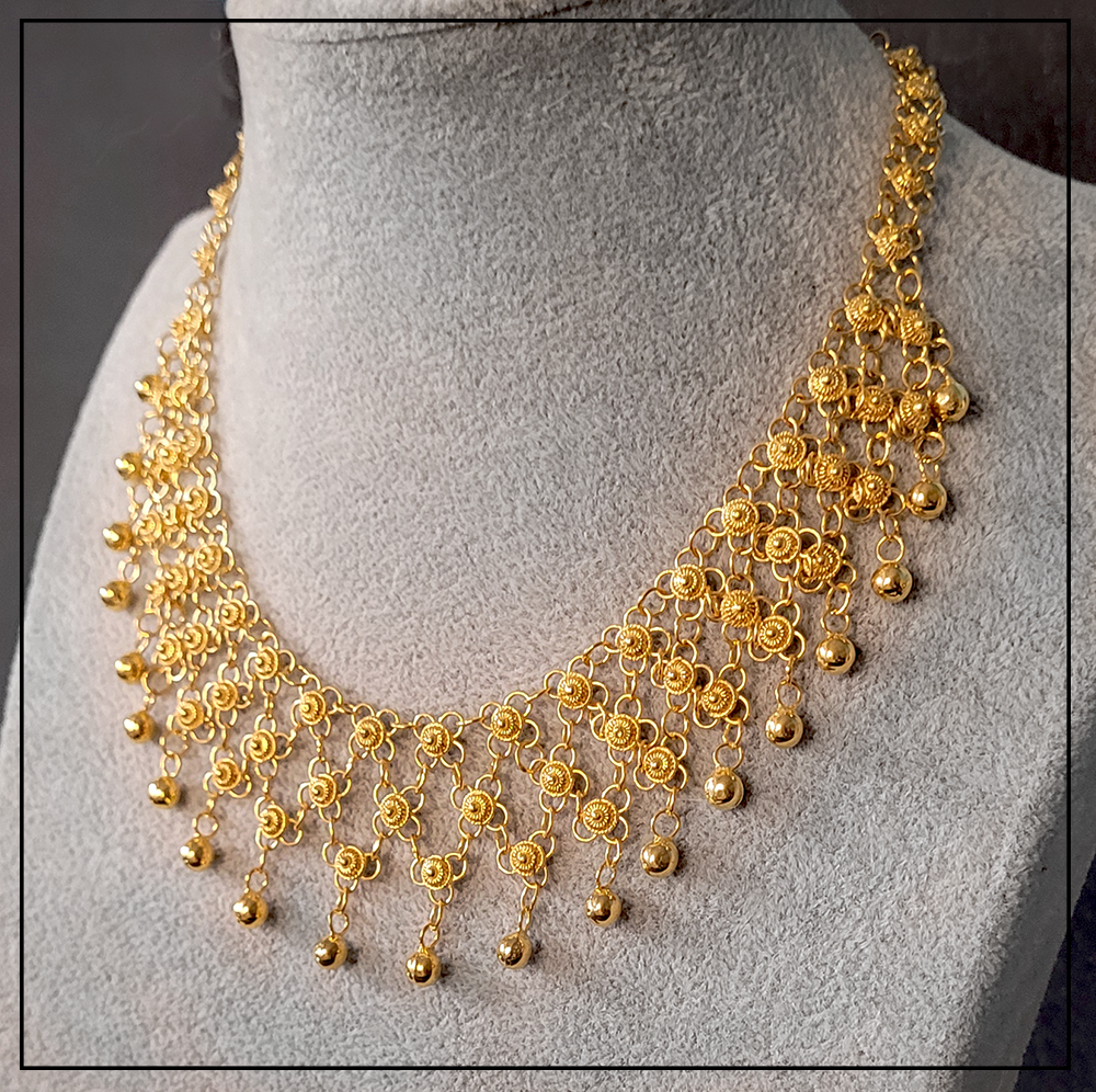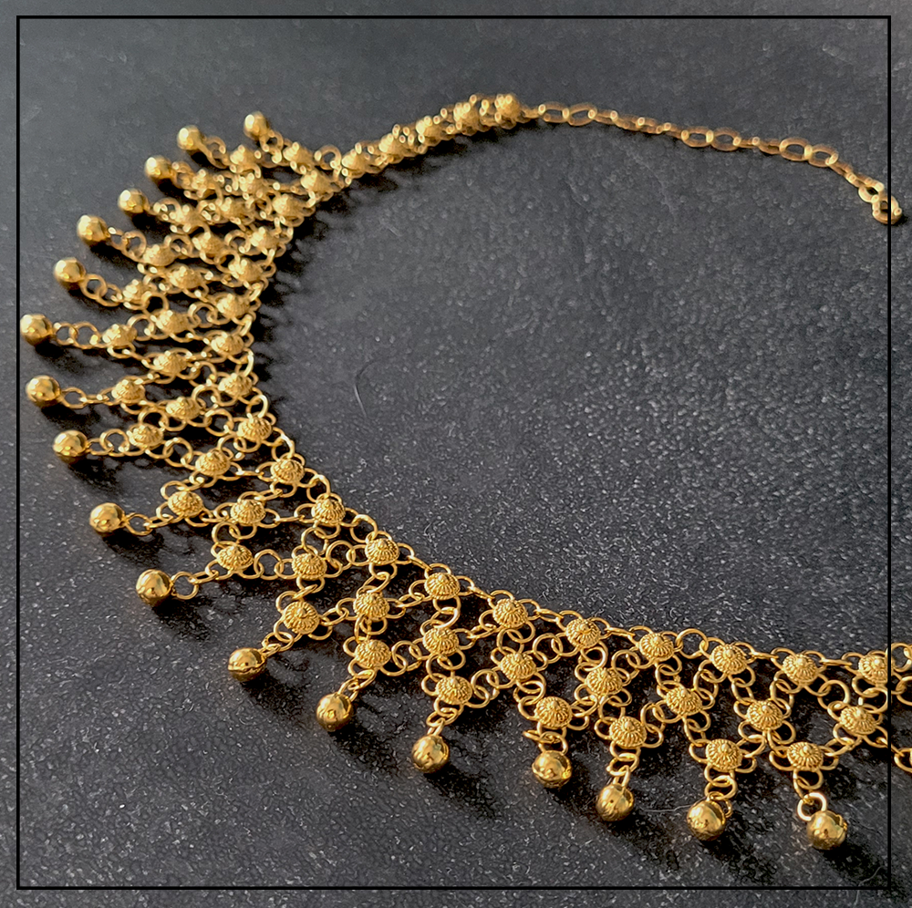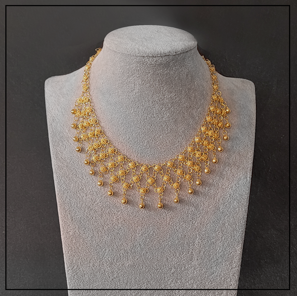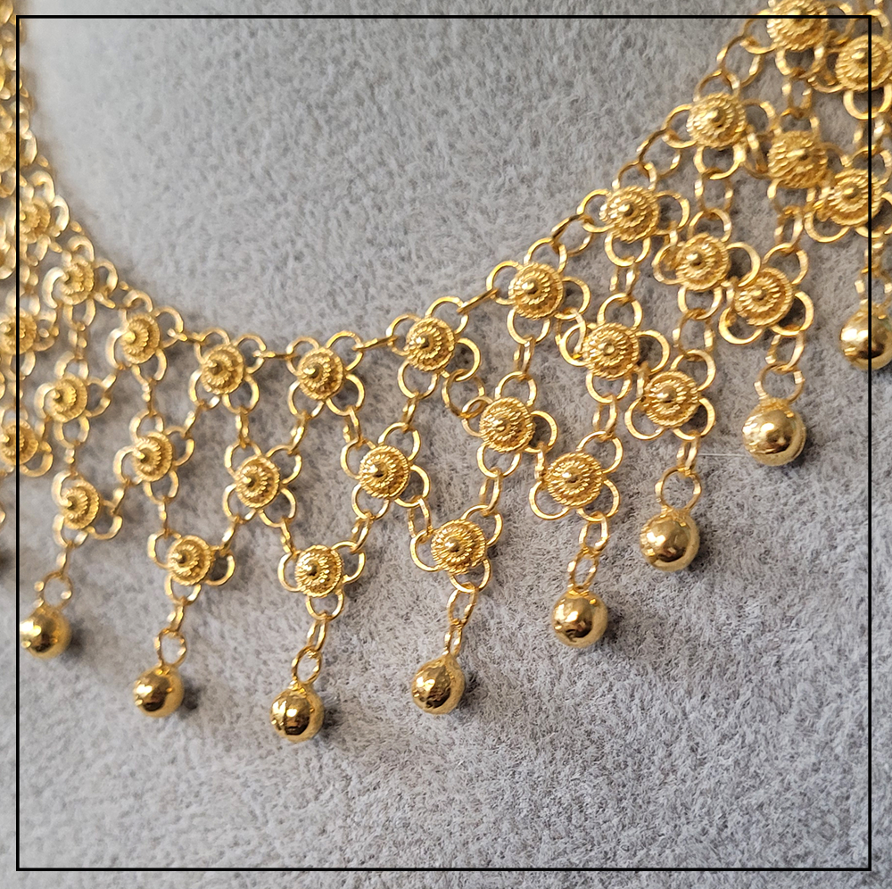 Opis produktu: Orientalny naszyjnik Telkari z wiszącymi kuleczkami to rękodzieło tureckie z regionu Mardin/Midyat.