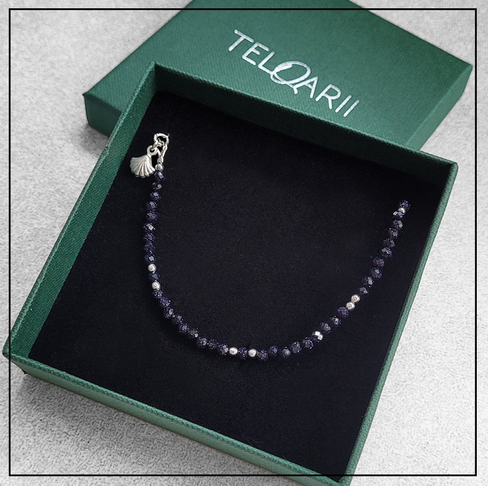 Sugerujemy zdejmowanie bransoletki przed kąpielą, do snu oraz do cięższych prac domowych aby unikąć uszkodzenia biżuterii. Pociemniałe elementy srebra można wyczyścić w specjalnym płynie do srebra lub w mieszance sody oczyszczone i soli zalanej wrzącą wodą.