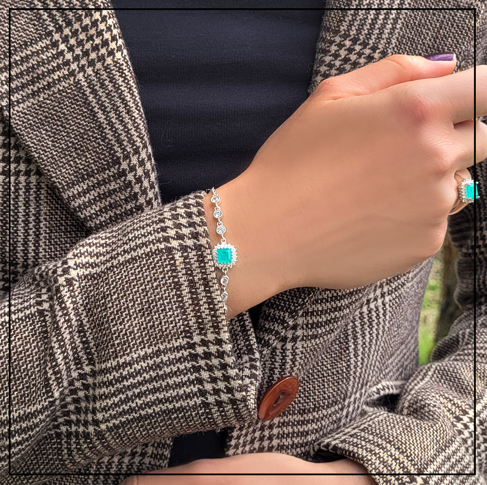 Materiał: Srebro 925, kamienie naturalne (turmalin paraiba), cyrkonie.