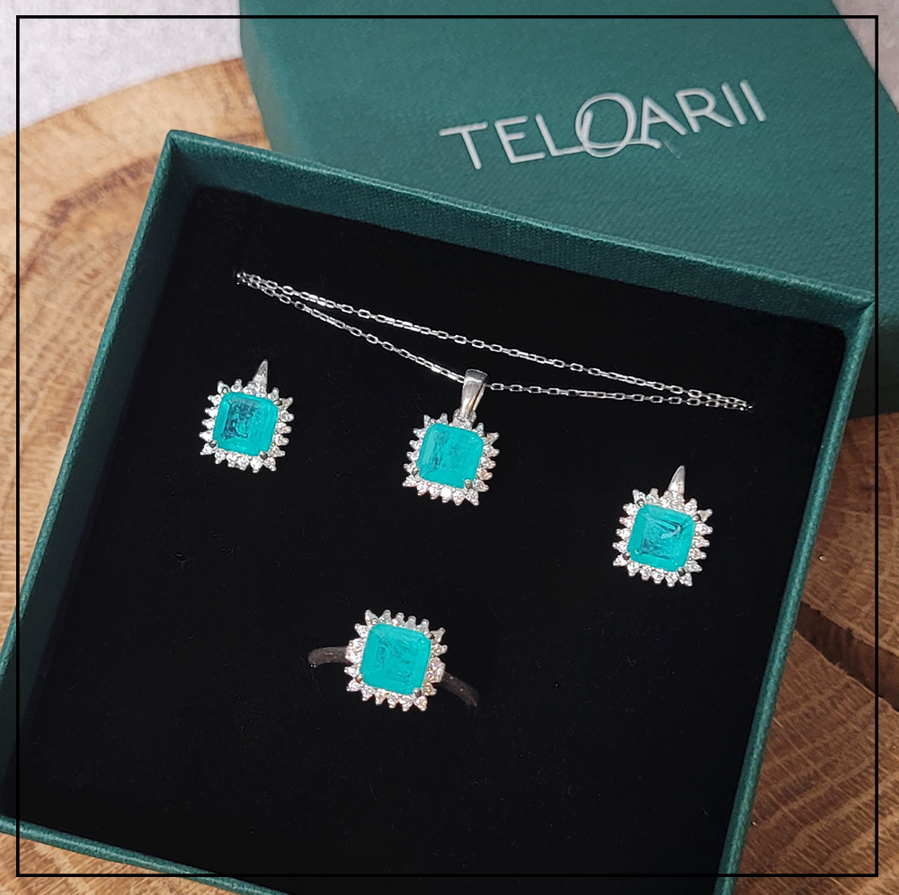 Turmalin Paraiba to kamień luksusu, jest symbolem jasnych myśli i świeżych emocji. Po raz pierwszy odkryto go w Paraiba w Brazylii i stąd też pochodzi jego nazwa. Kamień ten posiada mglistą, turkusową barwę.