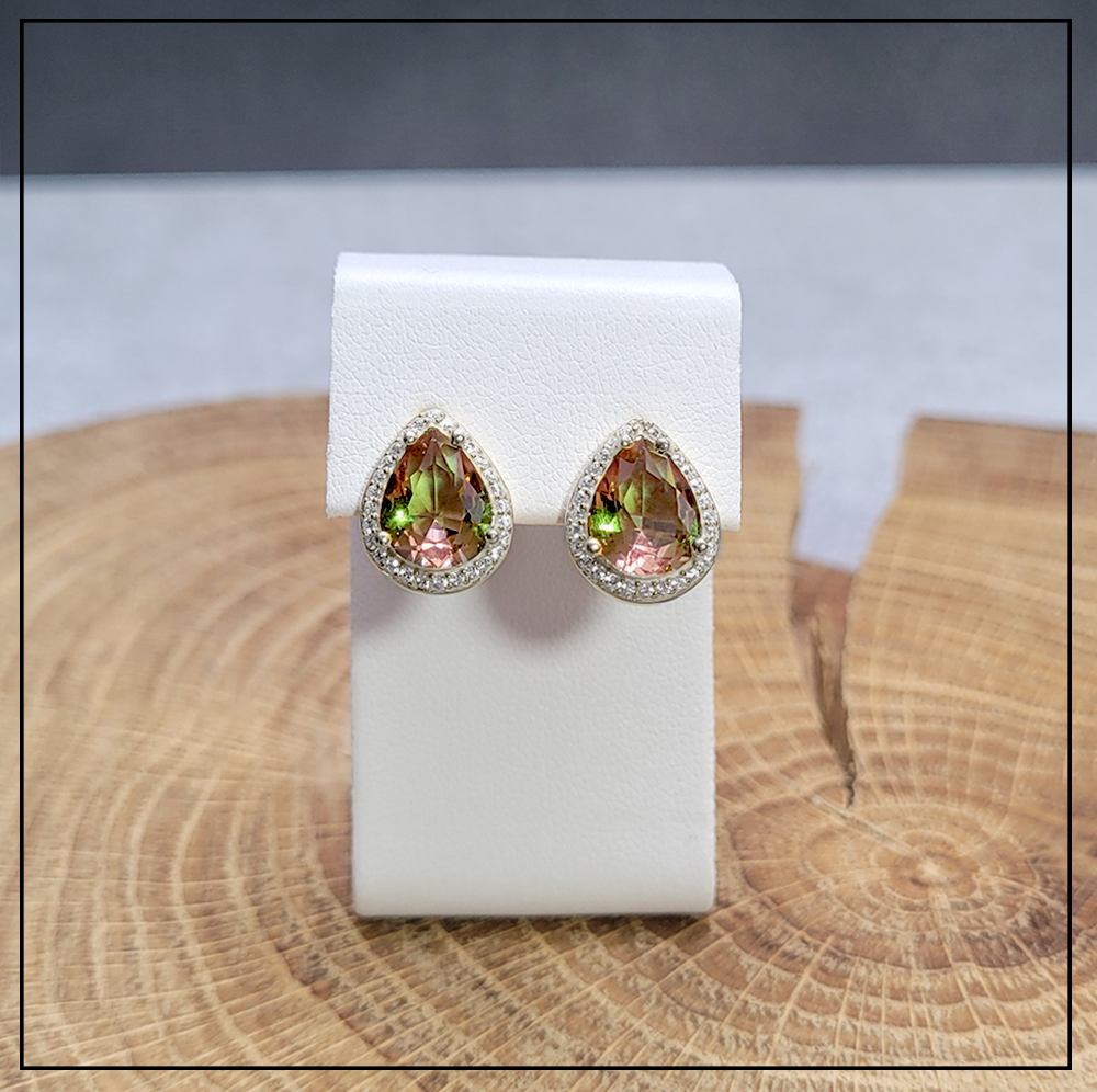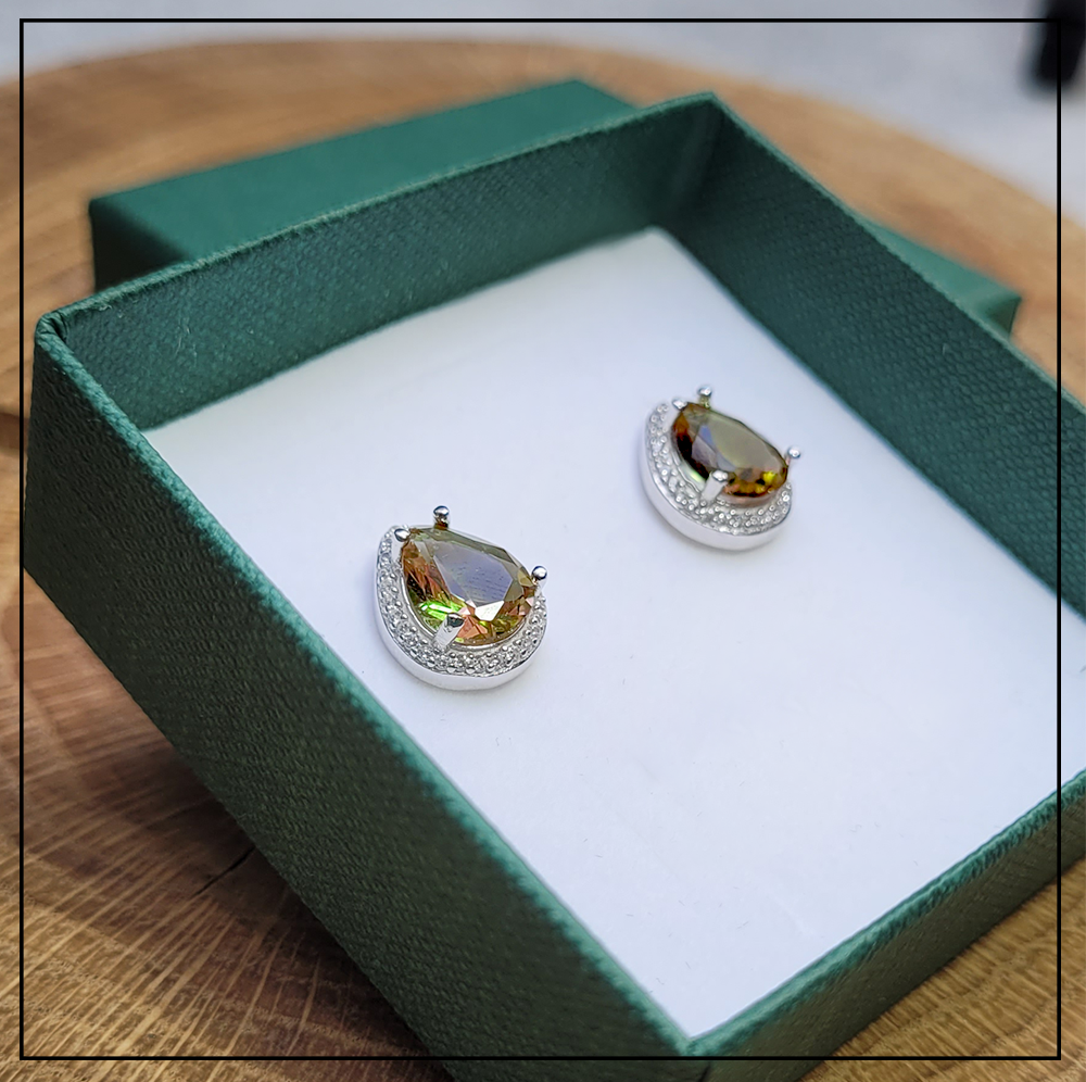Opis produktu: Kolczyki w kształcie kropli z kamieniem sułtanit w srebrnej oprawie.