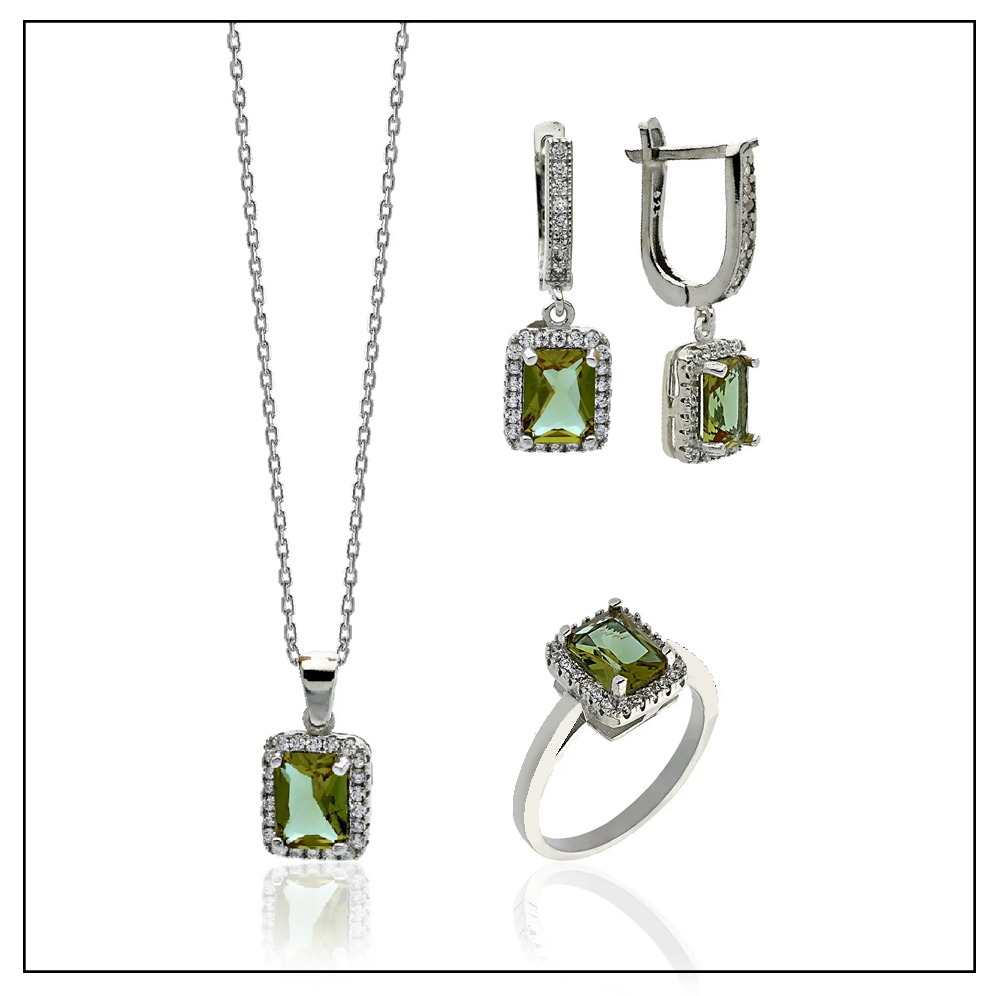 Opis produktu: Komplet składa się z pierścionka, kolczyków oraz zawieszki z łańcuszkiem.